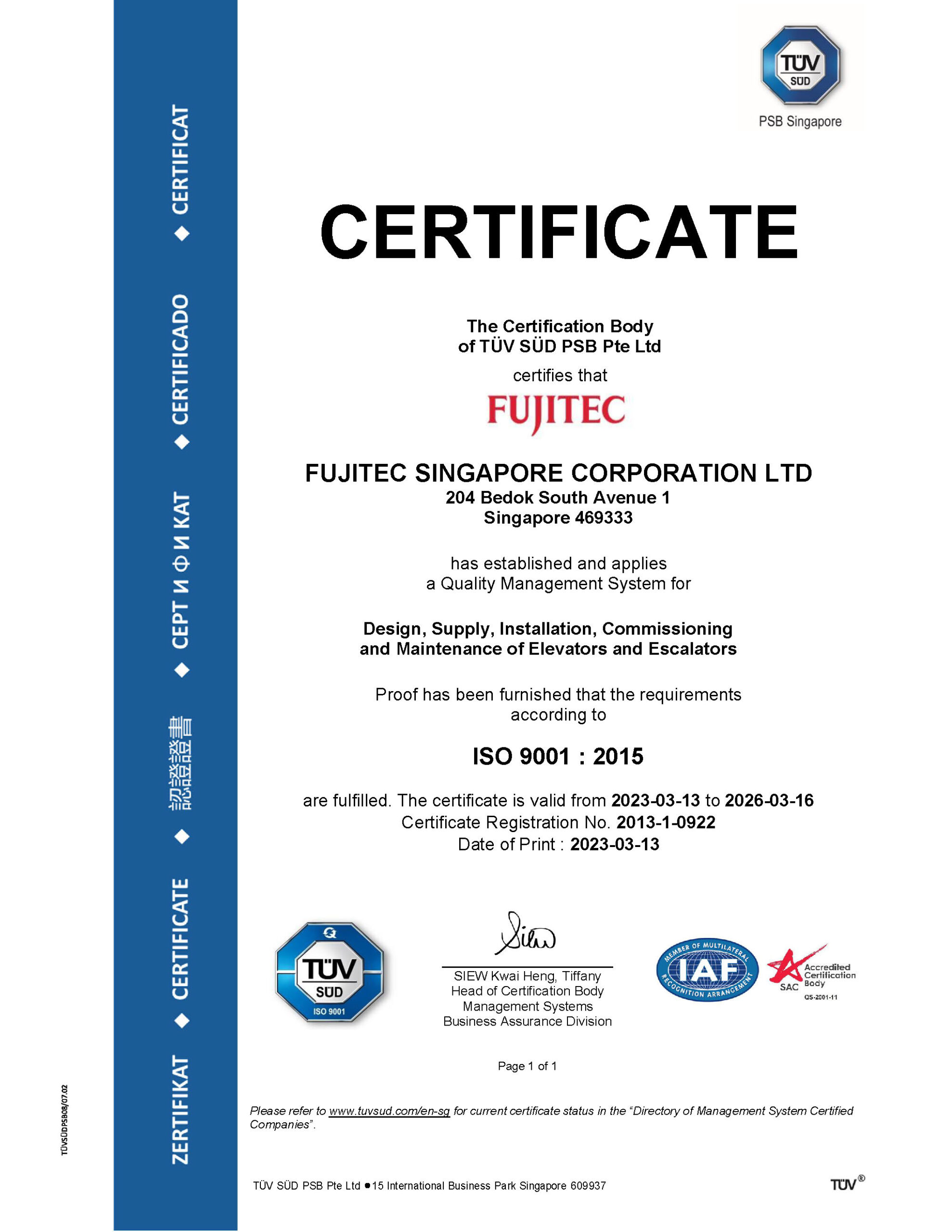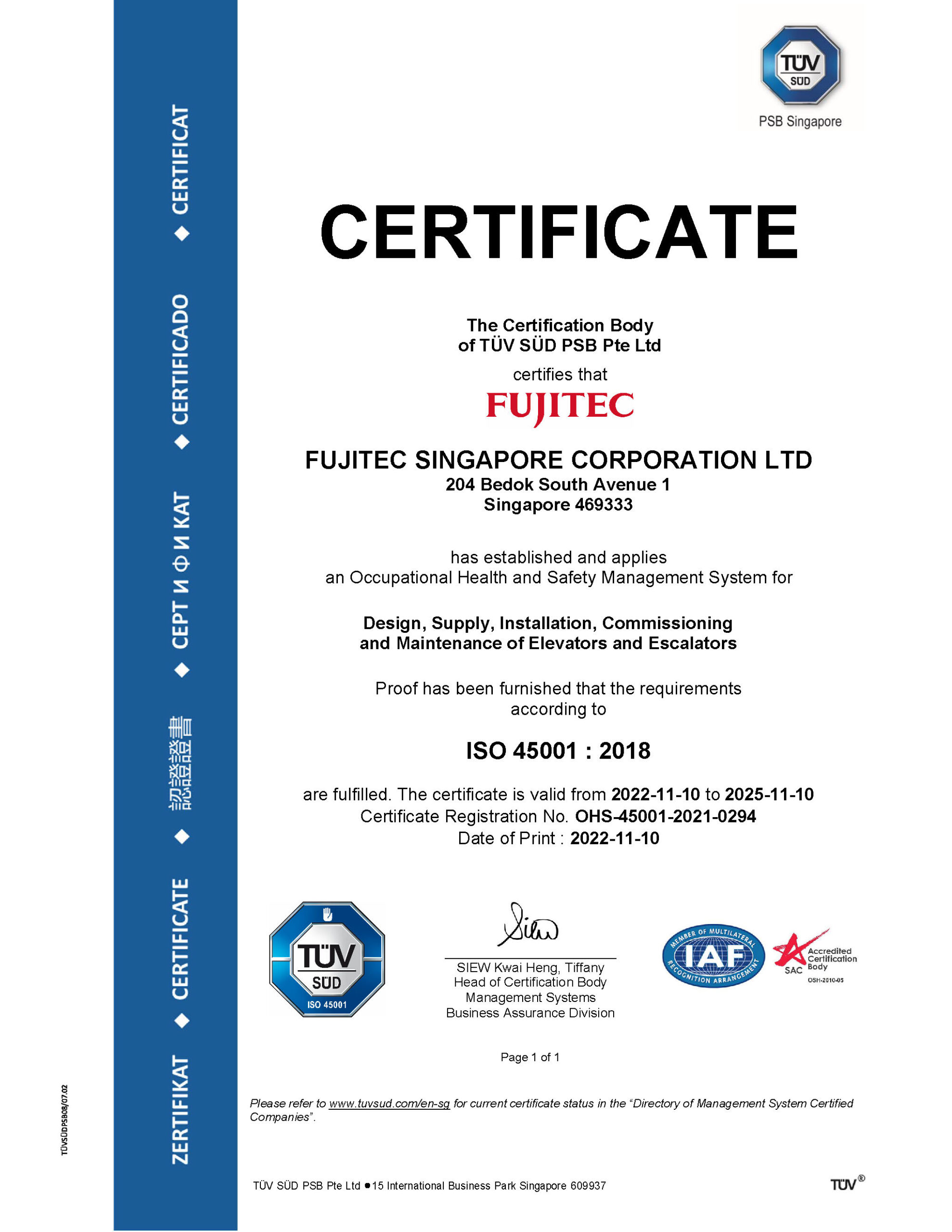 Fujitec Singapore Corporation Ltd is a subsidiary of Fujitec Co. Ltd. (Japan), is the leading Company in design, manufacturing, installation and servicing of elevators, escalators and autowalks. Fujitec Singapore Corporation Ltd was incorporated in August 1972.